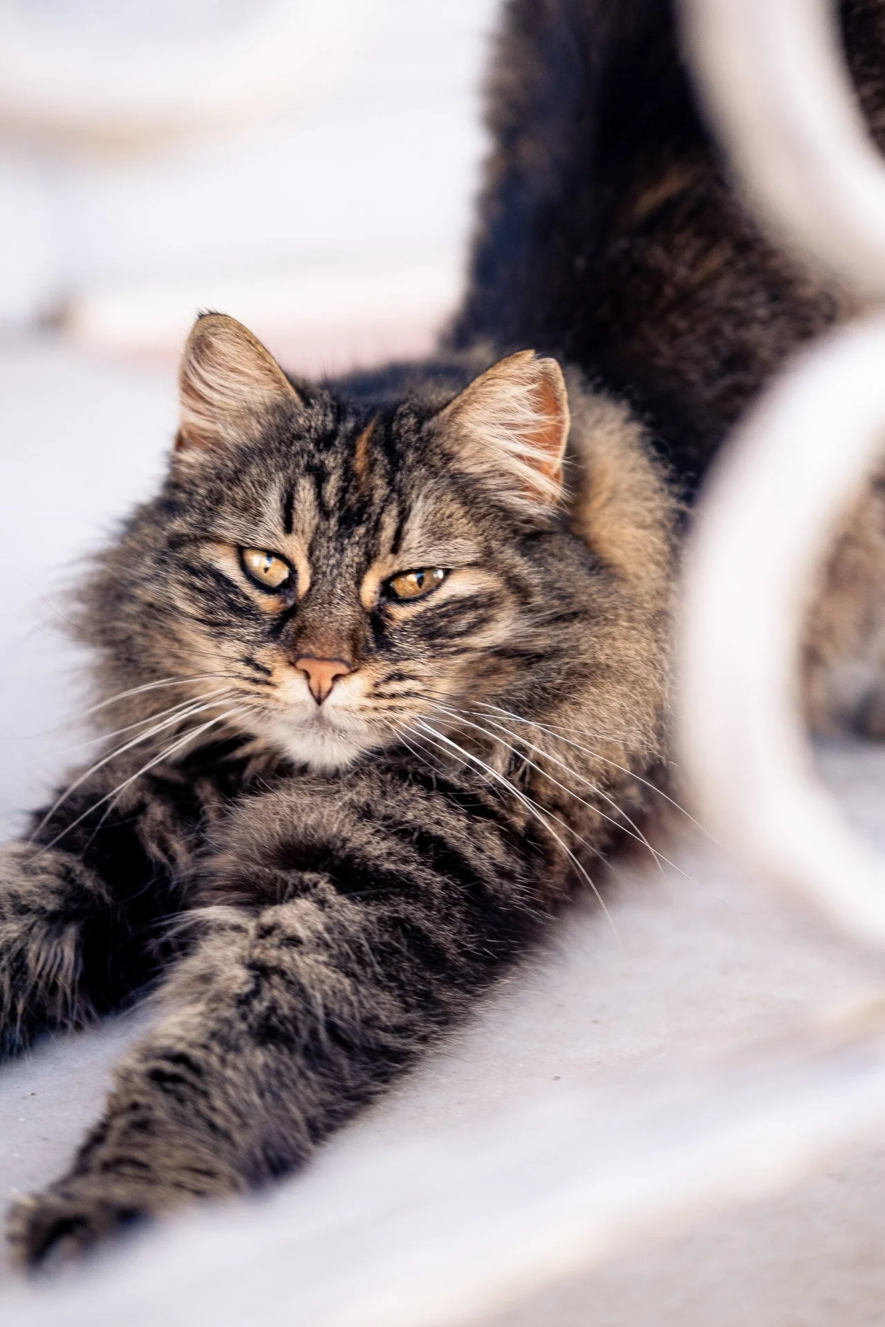 I have experimented with on-camera flash, which creates interesting street-style shots. However, we cannot determine how flash affects our feline subjects. When using flash, I opt for low power and maintain distance to avoid startling the cat.