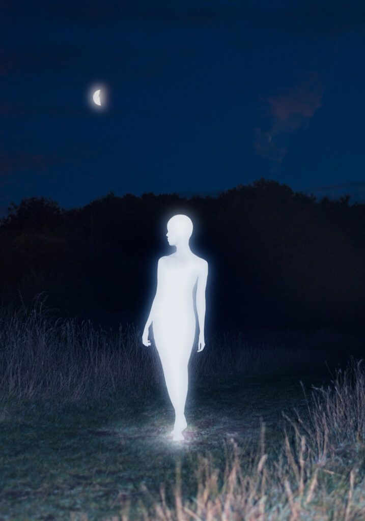 The character of this story is a statuesque, glowing figure. They lack definably gendered features, giving them the opportunity to simply exist. As pure light, the function of their body is to facilitate their existence, rather than to be a social limitation.